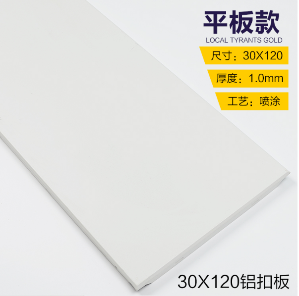 鋁扣板常用厚度有:0.5 mm、0.55mm,0.6 mm、0.65mm,0.7 mm、0.75mm,0.8 mm、0.9 mm、1.0 mm、1.2 mm。