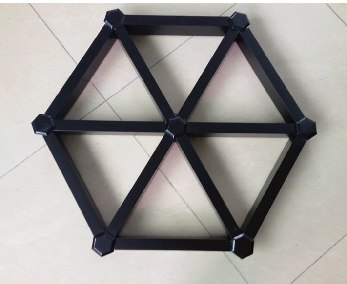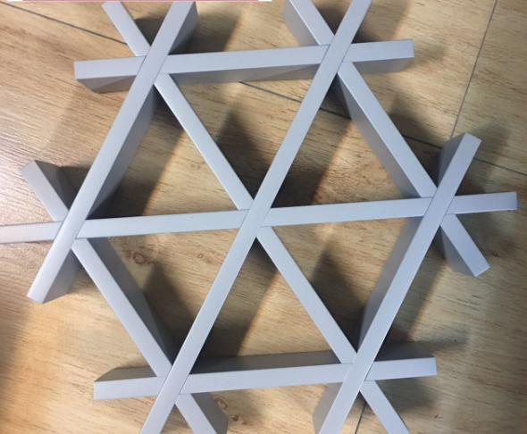 三角形鋁格柵天花吊頂組合起來是三角形的效果,而普通的鋁格柵天花是方格效果,鋁格柵天花吊頂,如果想要特別的裝飾效果,選擇三角格柵天花準沒錯。 板材三角格柵天花是一種沖壓成型加工得到的吊頂產品,因為鋁格柵產品的厚度一般偏薄,所以三角格柵天花的規格不會太大,同時,板材三角格柵天花和普通的鋁格柵天花一樣,是卡扣組合系統,安裝的時候通過主副骨卡扣組合起來再拼接滿足使用長度。