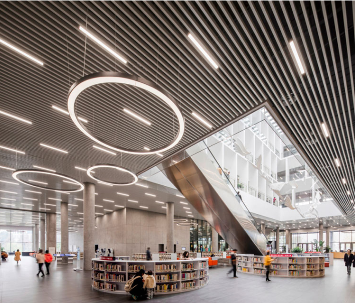 鋁方通吊頂天花,產品種類多,防火,防潮,環保,加工性能好,像商場這種公共場合,聚集人流的地方,必須需選擇防火,實用高性價比的材料了。