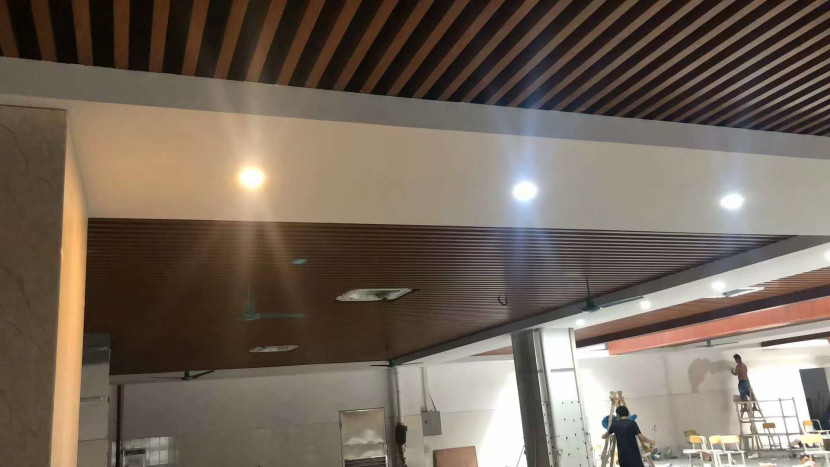 3、鋁方通層次分明,安裝效果簡潔大方,藝術(shù)風(fēng)格體現(xiàn)大受大眾的歡迎。