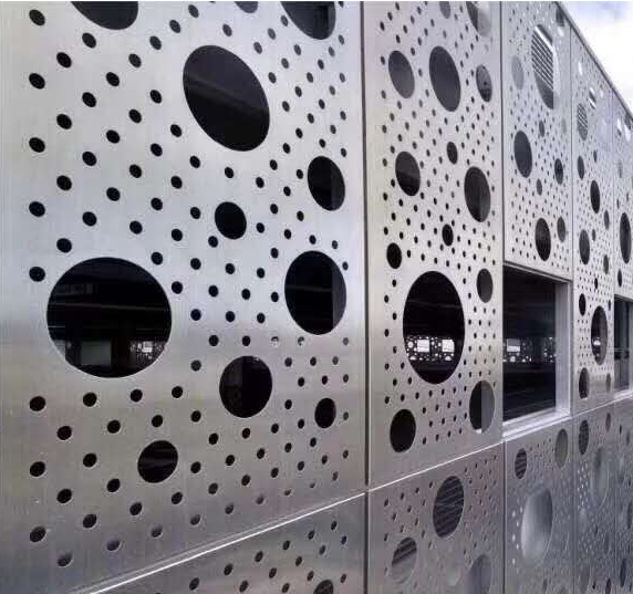 鋁單板沖孔幕墻厚度一般在1.5-3.0mm之間,其穿孔率就是指沖孔沖出來的余料量,根據孔徑的大小和密度計算每平方的穿孔率。