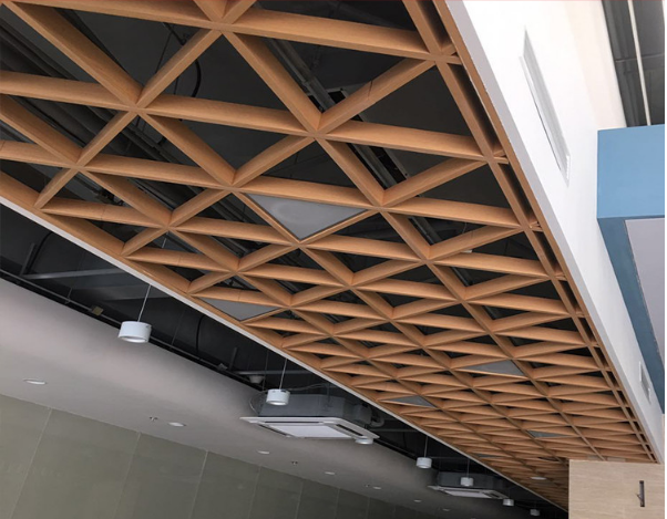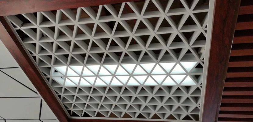 三角形鋁格柵天花吊頂組合起來是三角形的效果,而普通的鋁格柵天花是方格效果,格柵天花吊頂,如果想要特別的裝飾效果,那選擇三角格柵天花準沒錯。 板材三角格柵天花是一種沖壓成型加工得到的吊頂產品,因為格柵產品的厚度一般偏薄,所以三角格柵天花的規格不會太大,同時,板材三角格柵天花和普通的鋁格柵天花一樣,是卡扣組合系統,安裝的時候通過主副骨卡扣組合起來再拼接滿足使用長度。