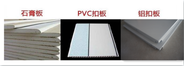 PVC扣板吊頂:PVC扣板以PVC為原料,具有防水、防潮、防蛀、阻燃等優點,但是塑料材質的普遍缺點就是物理性能不穩定,長期處于油煙和水汽較多的環境中,容易變形、老化。