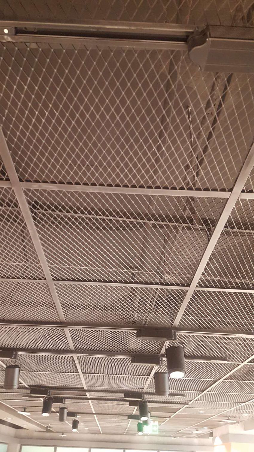 拉網天花吊頂通透式的網格天花金屬擴張網天花系統具有開放、透明的視野,配合金屬框骨架形成通透式的天花板面,呈現簡約美觀,空間通透。安裝時可以選擇暗骨方式或明架方式,是現代辦公樓,機場,地鐵站,高鐵站,大型商場等建筑物天花系統的選擇之一。